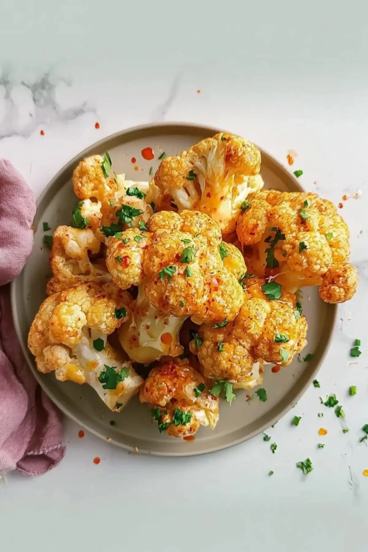 Achte darauf, die Blumenkohlröschen nicht zu groß zu schneiden – so garen sie gleichmäßig und die Panade haftet besser. Um noch mehr Knusprigkeit zu erreichen, kannst du die panierten Röschen vor dem Backen kurz im Kühlschrank ruhen lassen. Wenn du die Soße im Voraus zubereitest, zieht sie besser durch und schmeckt noch intensiver. Lagere Reste getrennt – Soße und Blumenkohl – und erwärme den Blumenkohl im Ofen, um die Knusprigkeit zu erhalten.
