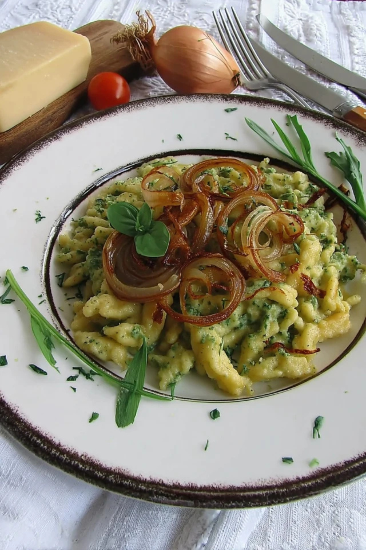Bärlauch Käsespätzle mit Röstzwiebeln