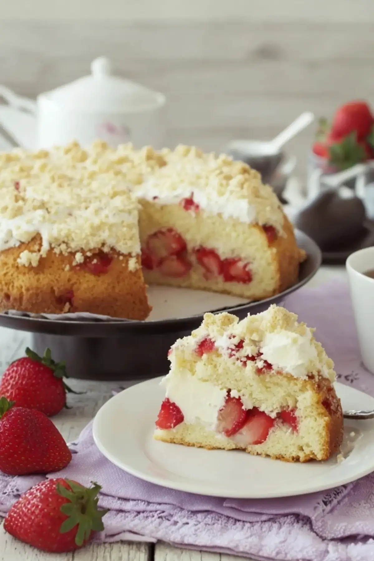 Ein sommerlicher Maulwurfkuchen mit Erdbeeren und hellem Teig – leicht, fruchtig und ideal für warme Tage. Die Kombination aus lockerem Biskuit, frischen Erdbeeren und Sahnecreme macht diesen Kuchen zu einem echten Highlight auf jeder Kaffeetafel.