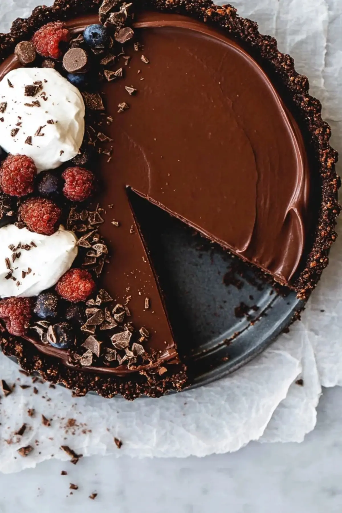 Diese vegane Schokotarte ist ein cremiges No-Bake Dessert mit intensivem Schokoladengeschmack. Sie ist glutenfrei, ohne raffinierten Zucker und perfekt für besondere Anlässe oder als gesunder Nachtisch.
